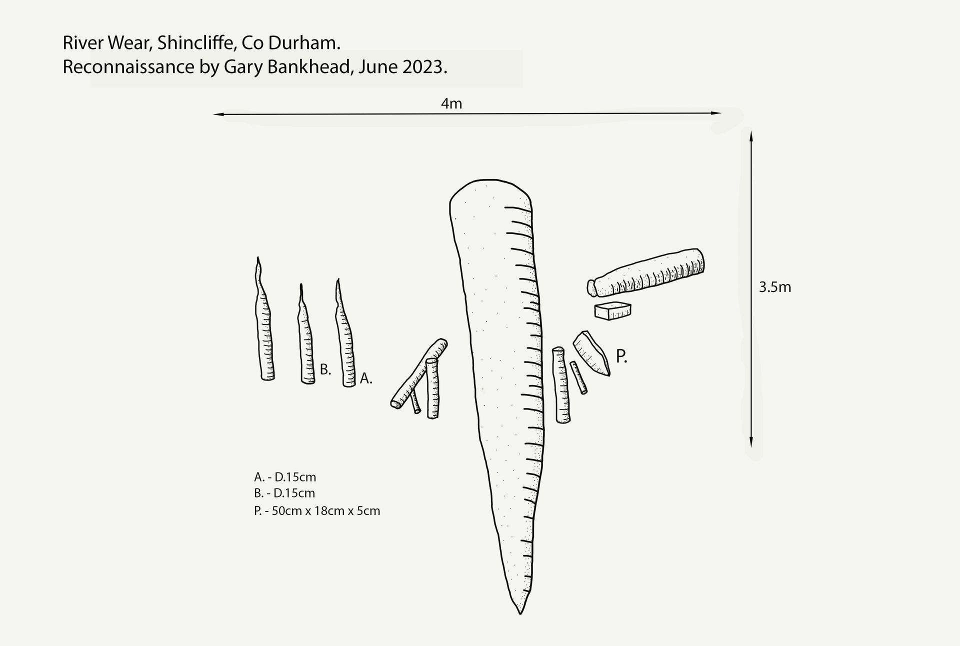 There has long been speculation in the local community about a possible Roman crossing of the River Wear at Shincliffe, fuelled by the discovery of timbers in 1983. In talk to Shincliffe Local History Society (SLHS) in 2011 about his work, Gary Bankhead mentioned that he had seen timbers and dressed stone in the Wear at Shincliffe, having been unaware of the mediaeval bridge. Subsequent discussions and research eventually led to the project for which the Architectural & Archaeology Soc. of Durham & Northumberland (AASDN) kindly provided a grant in 2024.