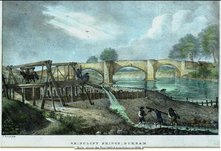 The first reference to a bridge is in the will of John Burgh, chaplain of Durham, dated 11th March 1290 ( Durham Cathedral Archive ; GB-0033-DCD-Cart.4 f.219r-v) in which he left £4 12s. 1d. for arrears of the masons working on Shincliffe Bridge, and 18s for lime and stones bought.